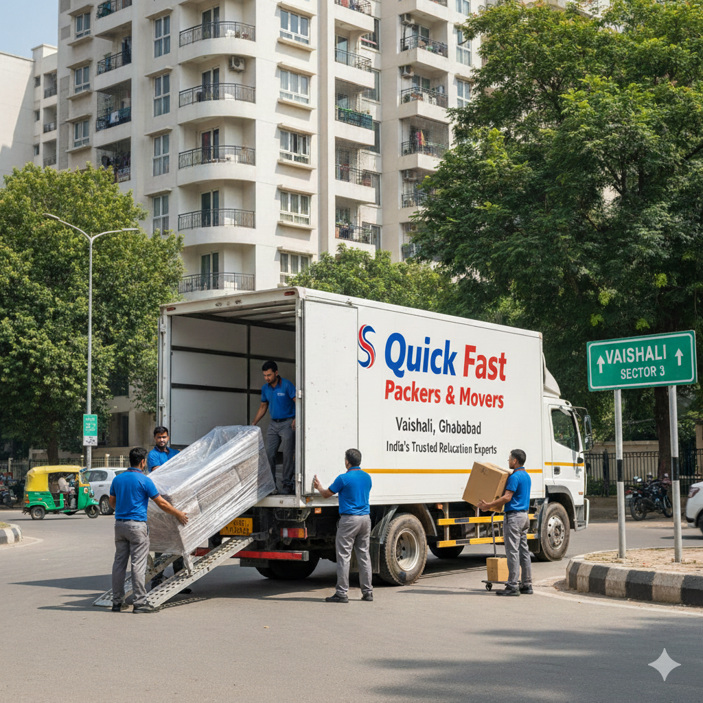 Quick Fast Packers Movers is a professional relocation company offering complete moving solutions in Vaishali and nearby areas such as Indirapuram, Kaushambi, Vasundhara, Noida, and Delhi NCR. The company provides end-to-end services, including packing, loading, transportation, unloading, and unpacking for both residential and commercial clients.